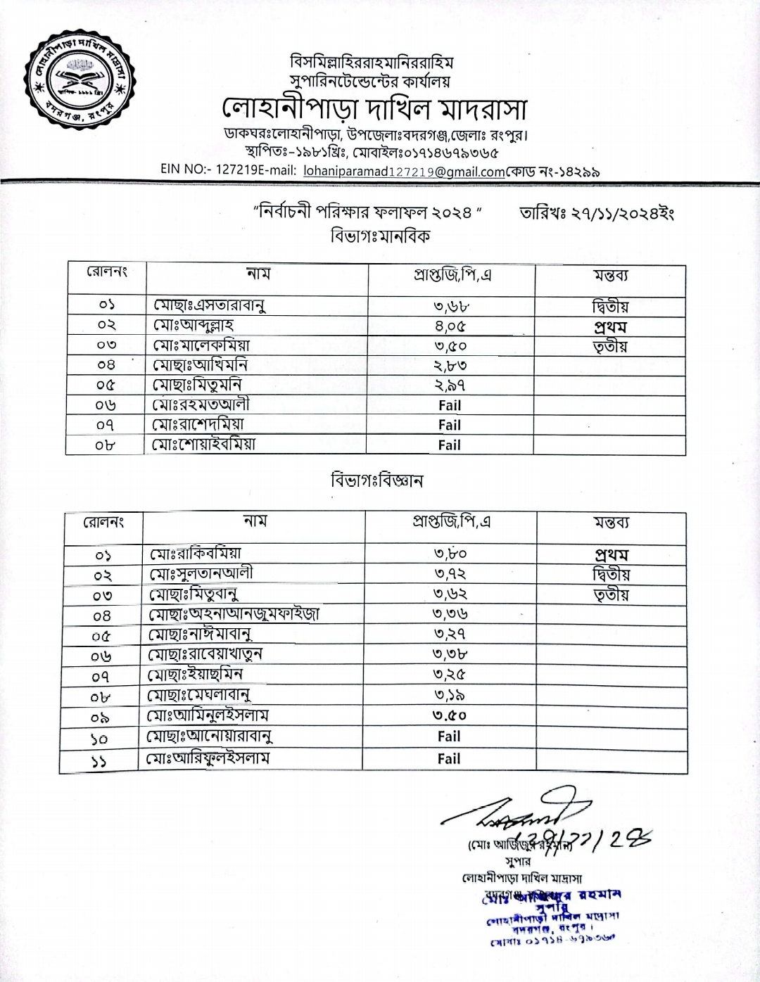 বৃহস্পতিবার, ২১ আগস্ট, ২০২৫ দাখিল পরীক্ষার ফলাফল ২০২৫ খ্রীঃ । বিস্তারিত ভিউ/ডাউনলোড